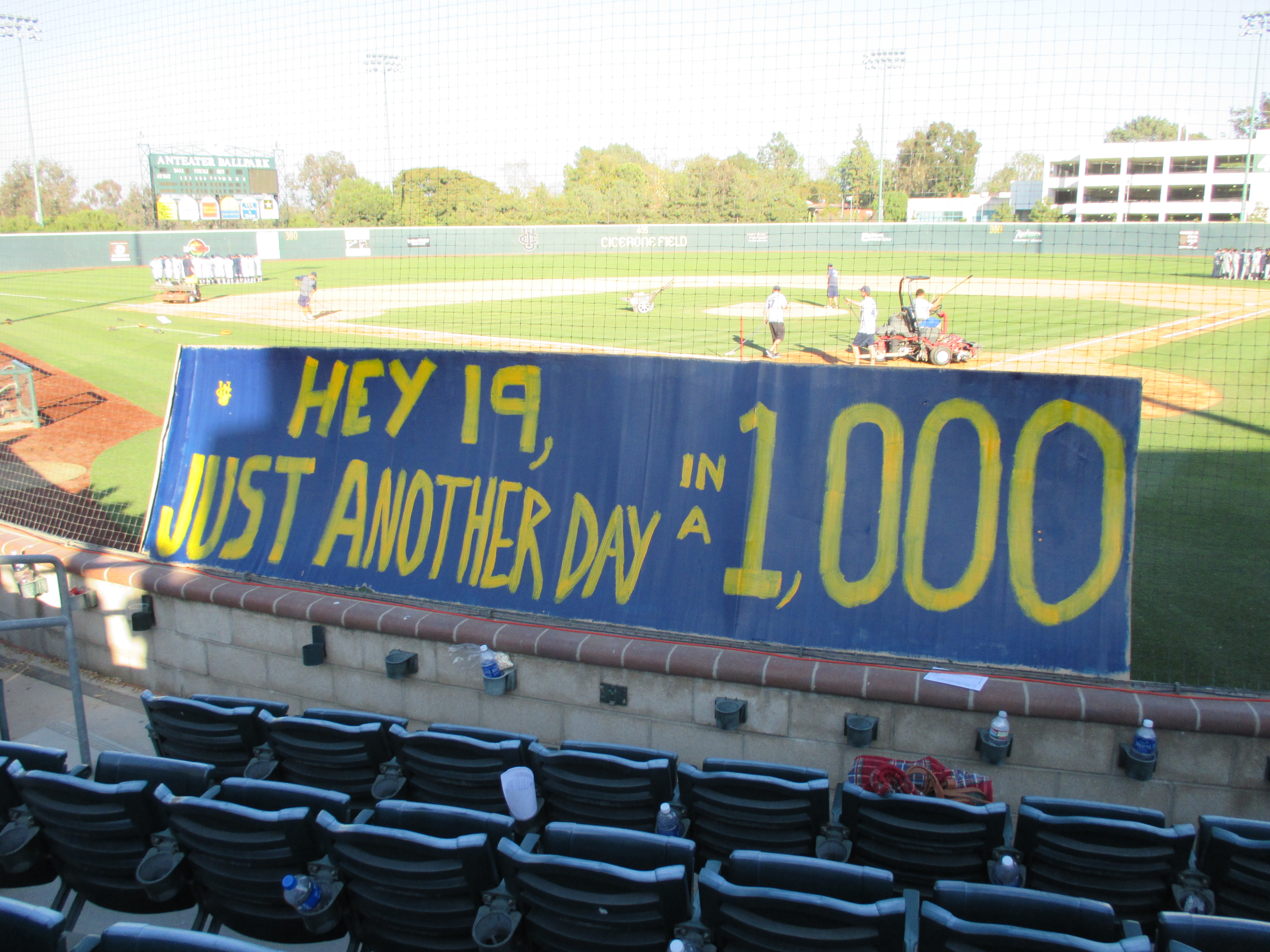2014 broke with great hope and anticipation for the team. The Captain had returned home to forge a new mentality and a head coach was on the verge of a career milestone. 1000 D-1 wins doesn’t come easy and the fact that you’re doing it in a UCI uniform makes it an Anteater community thing. Individual accolades in baseball are fulfilling but unobtainable without your team and lack prestige without the fans to celebrate them. I was present for 800 and 850 and have the signed tickets to show for it. With 900 we went a little further with signs and post-game on field congratulations. I did the same for the 1000th win but it had an entirely different outcome.